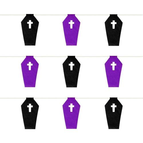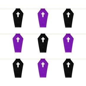 Kit Bandeirinha Halloween Caixão Pretoroxo 10 Pacotes Com 5 Metros BOOOOO Se você está procurando uma opção de decoração de Halloween prática e criativa, o Kit de Bandeirinha Decorativa Caixão Preto Roxo que oferecemos é perfeito para vocêEssas Bandeirinhas foram feitas de Papel Seda, com muita criatividade e carinho, possuindo um total de 9 bandeirinhas em cada pacote, suspensas por um barbante que tem o comprimento de 5 metros. O melhor é que são 10 pacotes que vêm no kit, ou seja, você terá um total de 50 metros de bandeirinhas para decorar o seu espaçoAdquira já o seu Kit de Bandeirinhas Decorativas e faça uma decoração incrivelmente assustadora de Halloween com muita facilidade e economia
