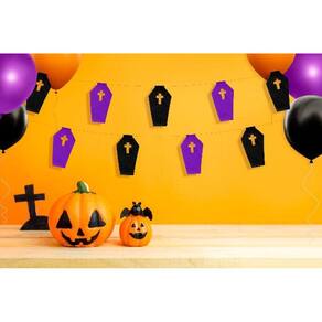Kit Bandeirinha Halloween Caixão Pretoroxo 10 Pacotes Com 5 Metros BOOOOO Se você está procurando uma opção de decoração de Halloween prática e criativa, o Kit de Bandeirinha Decorativa Caixão Preto Roxo que oferecemos é perfeito para vocêEssas Bandeirinhas foram feitas de Papel Seda, com muita criatividade e carinho, possuindo um total de 9 bandeirinhas em cada pacote, suspensas por um barbante que tem o comprimento de 5 metros. O melhor é que são 10 pacotes que vêm no kit, ou seja, você terá um total de 50 metros de bandeirinhas para decorar o seu espaçoAdquira já o seu Kit de Bandeirinhas Decorativas e faça uma decoração incrivelmente assustadora de Halloween com muita facilidade e economia