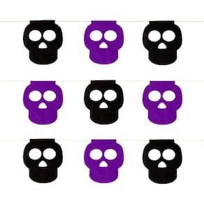 Kit Bandeirinha Halloween Caveira Pretoroxo 10 Pacotes Com 5 Metros BOOOOO Se você está procurando uma opção de decoração de Halloween prática e criativa, o Kit de Bandeirinha Decorativa Caveira Preto Roxo que oferecemos é perfeito para vocêEssas Bandeirinhas foram feitas de Papel Seda, com muita criatividade e carinho, possuindo um total de 9 Caveirinhas em cada pacote, suspensas por um barbante que tem o comprimento de 5 metros. O melhor é que são 10 pacotes que vêm no kit, ou seja, você terá um total de 50 metros de bandeirinhas para decorar o seu espaçoAdquira já o seu Kit de Bandeirinhas Decorativas e faça uma decoração incrivelmente assustadora de Halloween com muita facilidade e economia