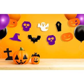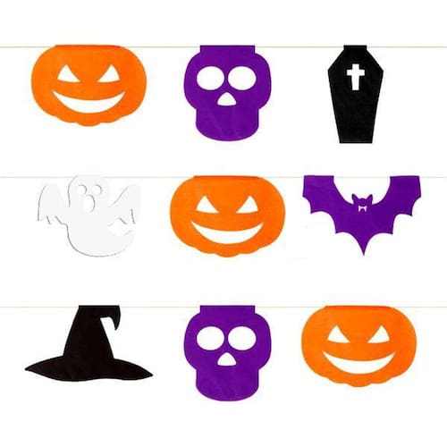 Kit Bandeirinha Mix Abochapcavcxaofantmorc 10 Pacotes Com 5 Metros BOOOOO Se você está procurando uma opção de decoração de Halloween prática e criativa, o Kit de Bandeirinha Decorativa que oferecemos é perfeito para vocêEssas Bandeirinhas foram feitas de Papel Seda, com muita criatividade e carinho, possuindo um total de 9 bandeirinhas em cada pacote, suspensas por um barbante que tem o comprimento de 5 metros. O melhor é que são 10 pacotes que vêm no kit, ou seja, você terá um total de 50 metros de bandeirinhas para decorar o seu espaçoAdquira já o seu Kit de Bandeirinhas Decorativas e faça uma decoração incrivelmente assustadora de Halloween com muita facilidade e economia