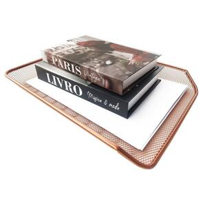 Kit Bandeja Organizadora E Porta Caneta De Escritório Rose Gold Essa maravilhosa bandeja organizadora multiuso de escritório e o porta caneta são ideais para você que procura praticidade para guarda e encontra canetas e papéis no seu dia a dia. Com eles você vai ganhar tempo e espaço, pois vai deixar a sua mesa de escritório ou escrivaninha sempre limpa e bem organizada, com tudo no seu devido lugar. Além é claro de dar mais sofisticação e elegância ao seu ambiente deixando ele com designer moderno. Você pode organizar e guardar documentos, papeis a4 e/ou sulfite, cadernos, livros, revistas, calculadoras, , arquivos e tudo o que mais desejar. É leve e prático de usar. Também pode guardar lápis e canetas. Cabe papel a4 e sulfite Características - bandejas/prateleiras - feito de metal - pintura resistente a risco - não necessita de montagem já vem pronta para usar Bandeja organizadora multiuso de mesa de escritório - cor: rose gold - material: metal - tamanho: 4x27,5x35cm altura x largura x comprimento - peso: 300gr Porta caneta, porta lápis - cor: rose gold - material: metal - tamanho: 9x10cm dxa - peso: 100gr Marca: Não Informado