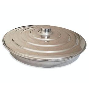 Kit Bandejas para Santa Ceia (Para cálices e pães)Kit contém:01 - Bandeja de alumínio (grande) com 56 cálices - prata - Com tampa- Medida 35cm de diâmetro01 - Bandeja de alumínio (pequena) para pão - prata- Com tampa- Medida 17cm de diâmetro Marca: Lk Magazine