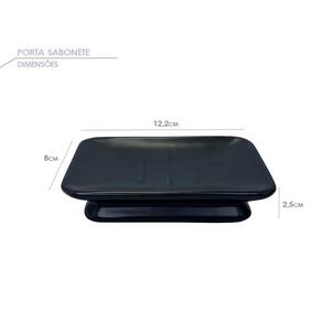 ESPECIFICAÇÕES: Material: Porcelana e PVC Dimensões: Porta Sabonete Liq. 7,5cm largura x 7,5cm profundidade x 16cm altura Porta Escovas 7,5cm largura x 7,5cm profundidade x 11cm altura Saboneteira 12,2cm largura x 8cm profundidade x 2,5cm altura Cor: Preto