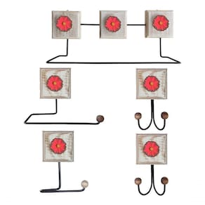 O kit possui 1 Toalheiro Grande + 1 Toalheiro para toalha de rosto + 2 Cabideiros de dois ganchos + 1 Porta Papel higiênico.