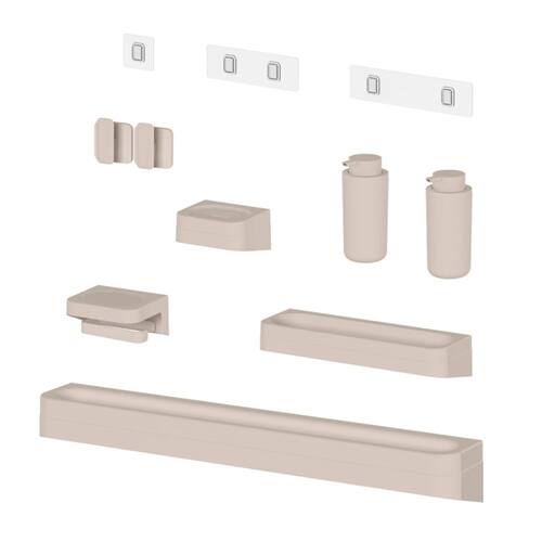 Kit Banheiro 8 Peças Saboneteira + Porta Papel Higiênico + Porta Shampoo + 2 Dispenser Shampoo + Toalheiro + 2 Ganchos + Adesivos Bege Ou