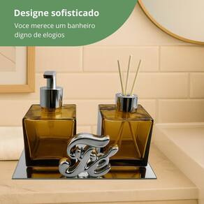 Kit Banheiro - Decoriatto O Kit Banheiro Decoriatto une elegância e praticidade para transformar banheiros e lavabos em ambientes sofisticados. Com frascos de vidro branco fosco, acabamento prime e detalhe em corda decorativa, o conjunto é disposto sobre uma bandeja espelhada e acompanhado de palavra decorativa e mini suculenta artificial, criando um visual moderno e harmonioso. Composição: 1 Frasco saboneteira de vidro branco fosco com tampa Prime 1 Frasco difusor de vidro branco fosco com tampa Prime e 3 varetas 1 Bandeja espelhada retangular. 1 Palavra decorativa. Diferenciais: Design sofisticado e atemporal. Ideal para decorar ou presentear. Materiais de alta qualidade. Marca: Não Informado