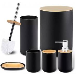 Kit Banheiro Bambu Lixeira Saboneteira 6 Peça Preto Plasvale conjunto para Banheiro Bambu 6 peças Plasvale