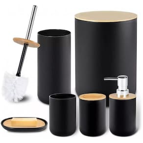 Kit Banheiro Bambu Lixeira Saboneteira 6 Peça Preto Plasvale