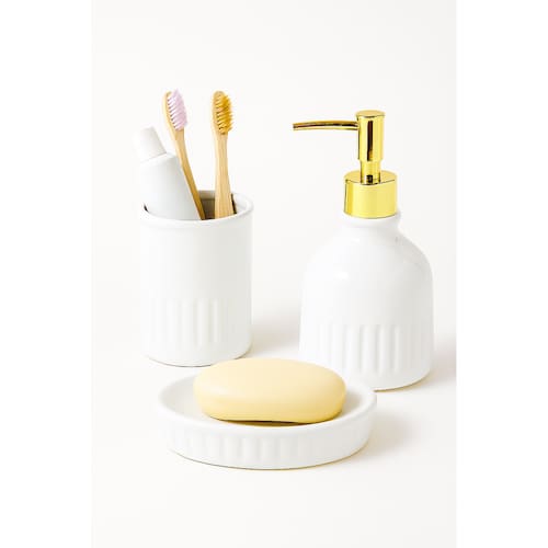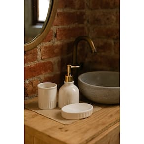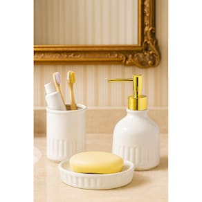 Deixe seu banheiro mais organizado e bonito com o Kit de Cerâmica 3 Peças funcionalidade e estilo em um só produto!