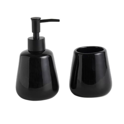 Nada melhor do que ter um banheiro organizado e com objetos proporcionando beleza ao ambiente não é mesmo Pensando nisso, a jolitex criou o kit banheiro primor preto para completar a decoração do seu banheiro. O kit possui 2 peças de cerâmica, sendo um dispenser para sabonete líquido e um pote para organização de itens da sua preferência, tornando o ambiente mais organizado e prático para o seu dia-a-dia e da sua família. A cor preta combina com qualquer decoração, além de dar um toque de requinte ao ambiente.
