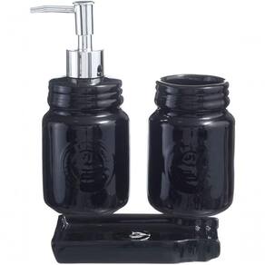 Especificações: - Porta Sabonete:17cm x 7cm - Porta Escova - 11cm x 7cm - Porta Sabonete - 13cm x 7,5cm - Produto: Kit Banheiro - Material: Cerâmica - Cor: Preto - Contém: Porta Sabonete Líquido 350 ml -Porta Escova - Porta Sabonete