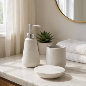 Ideal para uso diário, o kit combina resistência e estilo para deixar sua bancada mais bonita e organizada. Perfeito para quem busca sofisticação nos detalhes. Marca: Não Informado