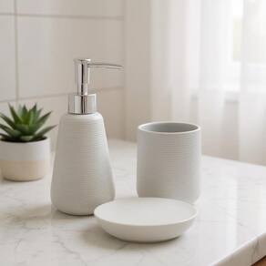 Ideal para uso diário, o kit combina resistência e estilo para deixar sua bancada mais bonita e organizada. Perfeito para quem busca sofisticação nos detalhes.