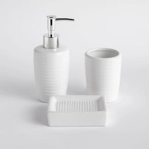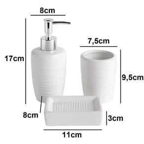 Ficha técnica: - material: cerâmica - tamanho do dispenser: a-17cm d-8cm - tamanho do pote: a-9,5cm d-7,5cm - tamanho da saboneteira: a-3cm l-11cm c-8cm