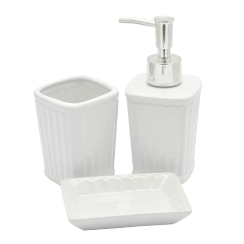 Kit Banheiro Lavabo Branco com Dispenser 3 Peças 4487 Preto Deixe seu banheiro ainda mais organizado com esse kit, seu tamanho compacto é ideal para ambientes com pouco espaço, outro ponto positivo é a cor neutra branca com bico preto fosco que combina com qualquer decoração. PRINCIPAIS DESTAQUES: - Tamanho compacto- Kit com 3 peças- Dispenser pode ser utilizado para sabão liquido ou álcool gel. CONTEÚDO DO KIT: - 1 Porta sabonete líquido: 16 x 6 altura x diâmetro - 1 Porta escova: 9 x 7cm altura x diâmetro - 1 Porta sabonete em barra: 2 x 8,5 x 11cm altura x largura x comprimento