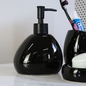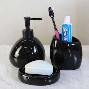 Medidas: Saboneteira - 11,5cm x 10cm x 2,5cm Porta Escova - 10cm x 8cm x 10cm Porta Sabonete Líquido - 10cm x 8cm x 15cm Marca: Kadê Ean: 7897368430975