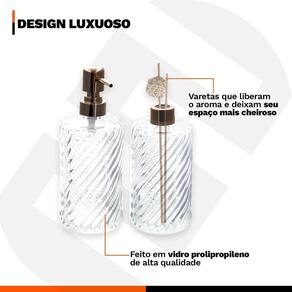 Kit banheiro luxo saboneteira líquida e porta aroma vidro espiral