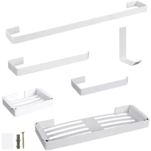 Kit para Banheiro Completo - Porta Toalha, Saboneteira e Gancho - Branco Kit para Banheiro Completo - Organização e Praticidade em 6 Peças 6 peças em aço branco: Porta toalha 45 cm , porta toalha rosto 22 cm , gancho, saboneteira, porta shampoo e porta papel higiênico. Dimensões inteligentes: Ideal para banheiros pequenos ou grandes. Cada peça foi projetada para otimizar espaço. Instalação simples: Vem com parafusos e buchas. Você mesmo instala em minutos. Material durável: Aço resistente à umidade, não enferruja e é fácil de limpar. Saboneteira e porta shampoo com ripas: Evita acúmulo de água e mau cheiro. Prático e funcional: Toalhas secam rápido, itens sempre organizados. Dúvidas frequentes: Cabe no meu banheiro Sim, as peças são compactas e versáteis. Aguenta peso Sim, cada gancho suporta até 5 kg. Precisa de para instalar Não, a instalação é simples e rápida. Marca: Não Informado Ean: 7437700506878