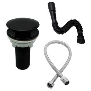 KIT VÁLVULA CLICK BANHEIRO 7/8 ABS PRETO FOSCO + SIFÃO SANFONADO PRETO FOSCO + ENGATE MALHA DE AÇO 40CMNa embalagem contém:01 Sifão Sanfonado01 Engate 40cm Malha de Aço01 Válvula Click 7/8 Abs PretoEngate Mangueira Flexível Trançado Aço Inox Quente Fria 40 cmPARA PRESSÃO DE ÁGUA ALTAO Engate Mangueira Flexível Trançado Aço Inox, indispensável para a instalações de torneiras, caixas acopladas, o engate malha de aço é um equipamento que não pode faltar na cozinha, banheiro ou lavanderia da sua casa, produzido em Aço inoxidável, possui grande resistência para alta pressão, e por ser flexível, adapta-se a qualquer tipo de instalação com muita facilidade.ESPECIFICAÇÕES TÉCNICAS DO PRODUTO E GARANTIA-Marca: Shop hidráulica-Tipo: Engate Mangueira Flexível-Material: Malha De Aço Inoxidável-Bitola Entrada Água: 1/2" Polegada-Utilização: Conexões de Torneiras ou Caixas AcopladasVálvula Click Para Banheiro Lavatório Escoamento 7/8 Abs Preto FoscoComprando com a gente você não precisa se preocupar, pois nosso corpo técnico já se preocupou com todos os detalhes para que você tenha em mãos um ótimo produto.ESPECIFICAÇÕES TÉCNICAS:-Diâmetro do encaixe na pia: 5,6 Centímetros (Medida Superior)-Diâmetro saída: 7/8”-Saída para engate de Sifão de 7/8”-Acompanha tampão em ABS-Composição: Corpo Válvulas - ABS / Tampão - ABS / Porca - ABS-Produto de fácil instalaçãoTubo Extensível Sifão Sanfonado Preto UniversalÉ um produto versátil e prático que facilita a instalação de diversos componentes em ambientes hidráulicos, como pias, tanques e lavatórios. Fabricados em plástico de alta qualidade, esses tubos garantem resistência, durabilidade e flexibilidade, adaptando-se a diferentes necessidades de instalação.CARACTERÍSTICAS:- Flexibilidade: Permitem ajustar o comprimento de acordo com a necessidade, facilitando a instalação em locais com medidas irregulares ou de difícil acesso.- Versatilidade: Compatíveis com diversos tipos de pias, tanques e lavatórios, podendo ser utilizados em instalações residenciais e comerciais.- Resistência: Fabricados em plástico de alta qualidade, suportam altas temperaturas e pressões, garantindo durabilidade e segurança.- Facilidade de instalação: Acompanham conexões rosqueadas ou de encaixe rápido, facilitando a instalação e dispensando a necessidade de ferramentas especiais.- Acabamento preto: Proporcionam um visual moderno e elegante para a sua cozinha ou banheiro.APLICAÇÕES:- Ligação de pias: O tubo extensível universal preto pode ser utilizado para conectar a cuba da pia à rede de esgoto e ao encanamento de água fria.ESPECIFICAÇÕES TÉCNICAS:- Marca: Shop hidráulica- Garantia: 1 ano- Material: Abs- Cor: Preto- Comprimento máximo: 65 cm- Comprimento mínimo:35 cm- Bitola: 7/8" x 1.1/4" x 1.1/2"- Temperatura Máxima: 50°CGarantia de fábrica: 1 ano Marca: Não Informado