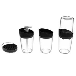 Kit Banheiro Transparente Crippa 4 Peças Porta Escova Porta Sabonete Líquido Porta Algodão e Saboneteira.