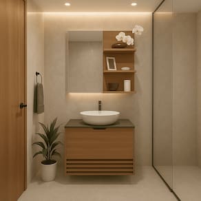 O Kit Vitalle é ideal para quem busca um banheiro mais moderno e organizado, com visual leve (suspenso) e ótimo aproveitamento de espaço. A espelheira traz prateleiras laterais para itens do dia a dia, enquanto o gabinete oferece espaço interno + nicho para manter tudo à mão, perfeito para banheiros e lavabos.