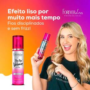 O Bye Bye Volume e No Frizz Liso Mágico 200ml é um spray alinhador dos fios que conta com proteção térmica. É ideal para a finalização de cabelos com excesso de volume e incômodo de frizz, já que forma uma película protetora contra a umidade. Seu previne pontas duplas, nutre, hidrata e proporciona brilho intenso.