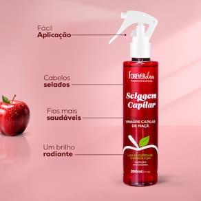 O Vinagre Capilar de Maçã 200ml age nos fios como uma selagem capilar. Recupera cabelos danificados, restaura o pH, deixa os fios hidratados e macios. Por ser um produto com pH baixo, sela as cutículas, tratando a porosidade e mantendo hidratados por muito mais tempo, sem pontas duplas e sem frizz. Marca: Não Informado