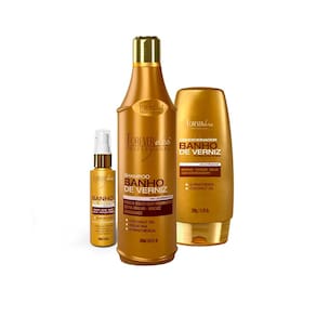O Shampoo Banho de Verniz inicia o tratamento limpando os fios e removendo o excesso de oleosidade do couro cabeludo.