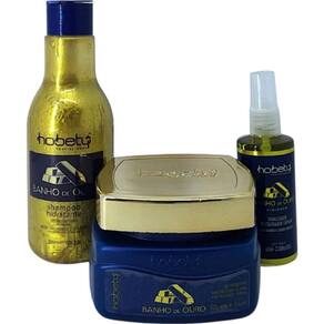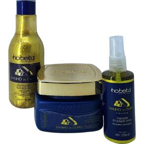 Contém 1 - shampoo hidratante banho de ouro 300ml hobety 1 - máscara hidratante banho de ouro 300g hobety 1 - finalizador restaurador capilar 60ml hobety Shampoo hidratante banho de ouro Sos instantâneo Ácido hialuronico - colágeno O shampoo banho de ouro - sos instantâneo hobety, foi desenvolvido para todos os tipos de cabelos, especialmente os fragilizados e quimicamente tratados, formulado com nano partículas de ativos como ácido hialurônico e colágeno, é o tratamento ideal no preenchimento das porosidades dos fios e o seu realinhamento, promovendo o fortalecimento, proteção e vitalidade dos cabelos. Modo de usar Com os cabelos úmidos, aplicar em toda a extensão dos fios, em movimento circular. Deixe agir por 10 minutos e enxague e repita operação. Após, utilizar a máscara capilar banho de ouro - sos instantâneo hobety, para finalizar o tratamento. máscara hidratante banho de ouro Sos instantâneo A máscara hidratante hobety , com nano partículas em ouro espelhamento efeito dourado foi desenvolvido exclusivamente para cabelos que necessitam de reparação capilar. Com ácido hialurônico proporcionando melhor defesa contra as agressões ambientais já que promove uma intensa hidratação; o colágeno ajuda a realinhar os fios, dando mais força e vitalidade também, proporcionando um aspecto mais saudável aos cabelos. As forças do ácido hialurônico e colágeno hidrolisado promovem reparo dos fios de forma instantânea e com efeito prolongado. Modo de aplicação: nos cabelos úmidos aplicar em toda a extensão dos fios, enluvando cuidadosamente mecha a mecha. Deixar agir por 10 minutos e enxaguar. Finalize como desejar. Finisher finalizador restaurador capilar Ácido hialuronico - colágeno hidrolisado Day - night O finalizador restaurador capilar fios de ouro sos da hobety foi desenvolvido com ácido hialurônico e colágeno hidrolisado, para reparar os fios de forma instantânea e com efeito prolongado, promovendo hidro-proteção e auxiliado a melhora elasticidade, deixando-os maleáveis e saudáveis. Modo de usar Agite antes de usar. Borrifar nos cabelos úmidos ou secos, em todo o comprimento e pontas como finalizador, utilizar sem enxágue, como defrizante, aplicar antes da escova ou chapa. Observação: indicado como sos instantâneo. Marca: Não Informado