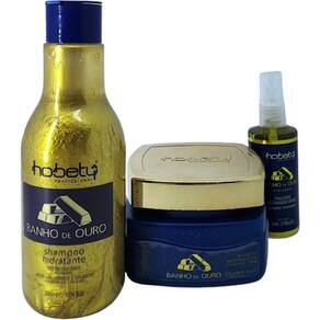 Contém 1 - shampoo hidratante banho de ouro 300ml hobety 1 - máscara hidratante banho de ouro 300g hobety 1 - finalizador restaurador capilar 60ml hobety Shampoo hidratante banho de ouro Sos instantâneo Ácido hialuronico - colágeno O shampoo banho de ouro - sos instantâneo hobety, foi desenvolvido para todos os tipos de cabelos, especialmente os fragilizados e quimicamente tratados, formulado com nano partículas de ativos como ácido hialurônico e colágeno, é o tratamento ideal no preenchimento das porosidades dos fios e o seu realinhamento, promovendo o fortalecimento, proteção e vitalidade dos cabelos. Modo de usar Com os cabelos úmidos, aplicar em toda a extensão dos fios, em movimento circular. Deixe agir por 10 minutos e enxague e repita operação. Após, utilizar a máscara capilar banho de ouro - sos instantâneo hobety, para finalizar o tratamento. máscara hidratante banho de ouro Sos instantâneo A máscara hidratante hobety , com nano partículas em ouro espelhamento efeito dourado foi desenvolvido exclusivamente para cabelos que necessitam de reparação capilar. Com ácido hialurônico proporcionando melhor defesa contra as agressões ambientais já que promove uma intensa hidratação; o colágeno ajuda a realinhar os fios, dando mais força e vitalidade também, proporcionando um aspecto mais saudável aos cabelos. As forças do ácido hialurônico e colágeno hidrolisado promovem reparo dos fios de forma instantânea e com efeito prolongado. Modo de aplicação: nos cabelos úmidos aplicar em toda a extensão dos fios, enluvando cuidadosamente mecha a mecha. Deixar agir por 10 minutos e enxaguar. Finalize como desejar. Finisher finalizador restaurador capilar Ácido hialuronico - colágeno hidrolisado Day - night O finalizador restaurador capilar fios de ouro sos da hobety foi desenvolvido com ácido hialurônico e colágeno hidrolisado, para reparar os fios de forma instantânea e com efeito prolongado, promovendo hidro-proteção e auxiliado a melhora elasticidade, deixando-os maleáveis e saudáveis. Modo de usar Agite antes de usar. Borrifar nos cabelos úmidos ou secos, em todo o comprimento e pontas como finalizador, utilizar sem enxágue, como defrizante, aplicar antes da escova ou chapa. Observação: indicado como sos instantâneo. Marca: Não Informado Ean: 7896378727174