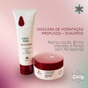 O Kit Doce Raiz foi desenvolvido para um ritual completo de hidratação capilar. O Shampoo Doce Raiz limpa suavemente enquanto prepara os fios para receber o tratamento, promovendo brilho e força desde a primeira lavagem. A Máscara de Hidratação Profunda complementa o cuidado com uma ação intensiva de restauração e maciez, devolvendo a vitalidade e reduzindo o frizz. Ambos os produtos são enriquecidos com extrato de batata doce, que auxilia na regeneração da fibra capilar e no fortalecimento dos fios, e óleo de semente de uva, que nutre profundamente e estimula o crescimento saudável. A combinação dos dois oferece um resultado visível, cabelos mais fortes, sedosos e com aparência saudável. Sem parabenos, o Kit Doce Raiz proporciona uma experiência de beleza natural, unindo leveza, brilho e força em cada aplicação.