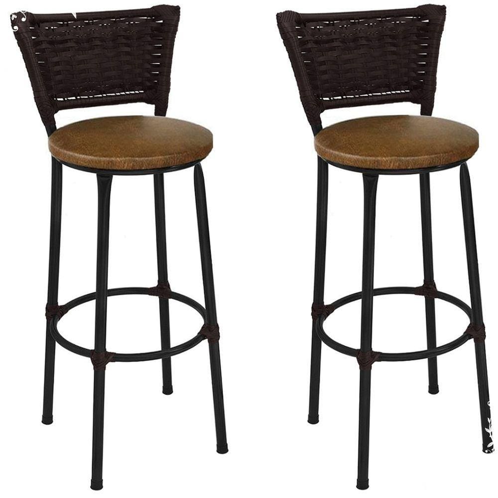 Kit 2 Banquetas Baixas Preta com Encosto Junco Capuccino Assento Marrom