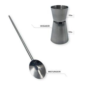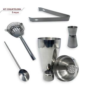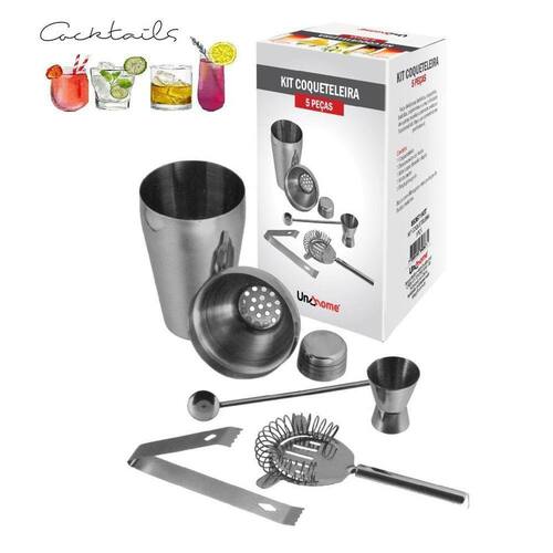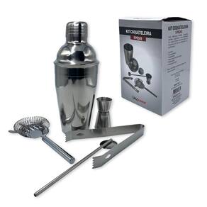Kit bar 5 peças coqueteleira e itens profissional em aço inox 550ml Desfrute de deliciosas bebidas com o kit coqueteleira inox de 5 peças, perfeito para quem adora fazer combinações incríveis. Seja para coquetéis clássicos, caipirinhas refrescantes, batidas irresistíveis ou uma infinidade de outras receitas, esse kit é essencial e prático. A coqueteleira possui uma boca com filtro, projetada para reter pedaços de frutas e gelo, garantindo uma bebida suave e sem resíduos indesejados. Solte sua criatividade e faça diversos drinks para surpreender seus convidados. Esse kit é ideal tanto para uso doméstico quanto profissional, permitindo que você crie suas bebidas favoritas em qualquer ocasião. Especificações: -material: aço inox-composição do kit:-01 coqueteleira,-01 separador,-01 mini copo dosador duplo,-01 misturador,-01 pinça para gelo Tamanho: coqueteleira - 22cm de altura x 7cm de diâmetro // separador - 18cm de comprimento x 7cm de largura // mini copo dosador - 7cm de altura x 3,5cm de diâmetro // misturador - 19cm de comprimento // pinça - 16cm de comprimento Contém:-01 kit coqueteleira inox 550ml com 5 peças