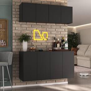 Kit Bar Armário Aéreo E Aparador 4 Portas Multimóveis Mp1075 Preto Preto Receba seus convidados com estilo e sofisticação com o Kit Bar Armário Aéreo e Aparador 4 Portas Multimóveis MP1075. Fabricado em MDP com acabamento acetinado (cerca de 20% de brilho), garante durabilidade e resistência. Composto por um aparador com quatro portas e prateleiras e um armário aéreo também com quatro portas, oferece amplo espaço interno para organizar bebidas, copos e outros itens de bar. Seu design clean proporciona um visual moderno e bonito. Por ser suspenso, otimiza o espaço e facilita a limpeza do ambiente. Conteúdo da Embalagem: 1 (um) Aparador 1 (um) Armário Aéreo Manual de Montagem Kit Ferragem