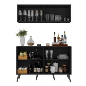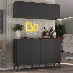 Kit Bar Armário Aéreo E Aparador 4 Portas Retrô Multimóveis Mp1086 Preto Preto Receba seus convidados com estilo e sofisticação com o Kit Bar Armário Aéreo e Aparador 4 Portas Retrô Multimóveis MP1086. Fabricado em MDP (15mm) com acabamento acetinado (cerca de 20% de brilho), garante durabilidade e resistência. Composto por um aparador e um armário aéreo com 4 portas e prateleiras, oferece amplo espaço interno para organizar bebidas, copos e outros itens de bar. Seu design clean proporciona um visual moderno que combina com qualquer tipo de decoração. Além disso, o aparador possui pés retrô em polipropileno que oferecem estabilidade e um charme vintage. Conteúdo da Embalagem: 1 (um) Aparador 1 (um) Armário Aéreo Manual de Montagem Kit Ferragem