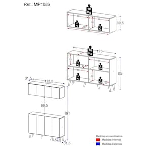 Dimensões do produto montado: Armário Aéreo - Altura: 39,5cm | Largura: 123,5cm | Profundidade: 31,5cm Aparador - Altura: 85cm | Largura: 123cm | Profundidade: 31,5cm *Você pode consultar as medidas detalhadas na imagem técnica do produto.