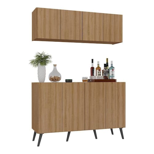 Kit Bar Armário Aéreo E Aparador 4 Portas Retrô Multimóveis Mp1086 Rustic/preto Rustic/preto Receba seus convidados com estilo e sofisticação com o Kit Bar Armário Aéreo e Aparador 4 Portas Retrô Multimóveis MP1086. Fabricado em MDP (15mm) com acabamento acetinado (cerca de 20% de brilho), garante durabilidade e resistência. Composto por um aparador e um armário aéreo com 4 portas e prateleiras, oferece amplo espaço interno para organizar bebidas, copos e outros itens de bar. Seu design clean proporciona um visual moderno que combina com qualquer tipo de decoração. Além disso, o aparador possui pés retrô em polipropileno que oferecem estabilidade e um charme vintage. Conteúdo da Embalagem: 1 (um) Aparador 1 (um) Armário Aéreo Manual de Montagem Kit Ferragem