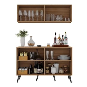 Dimensões do produto montado: Armário Aéreo - Altura: 39,5cm | Largura: 123,5cm | Profundidade: 31,5cm Aparador - Altura: 85cm | Largura: 123cm | Profundidade: 31,5cm *Você pode consultar as medidas detalhadas na imagem técnica do produto.