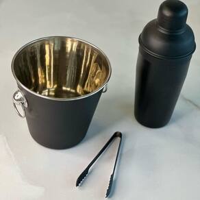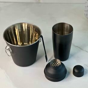 Kit bar black 3 peças balde / pegador / coqueteleira 500ml - ad Kit bar black 3 peças balde/pegador/coqueteleira 500ml