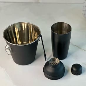 O kit bar black 3 peças é um conjunto completo projetado para atender às necessidades de quem aprecia a arte da mixologia e deseja criar coquetéis sofisticados. Composto por um balde de gelo, um pegador de gelo e uma coqueteleira de 500ml, este conjunto oferece as ferramentas essenciais para preparar e servir bebidas com estilo.