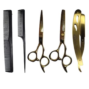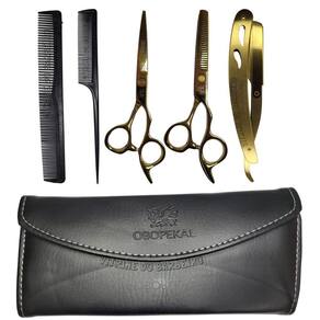5 - tesoura de cabeleireiro ou barbeiro profissional, indicada para cabeleireiros de beleza, cabeleireiros, amantes e indivíduos de cabelo. Pode ser utilizado para aparar cabelos faciais: barba e pelos do corpo, também indicado para a vida doméstica como o noivo de estimação. Perfeito para quem deseja trabalhar com produto 100% novo e de alta qualidade ferramenta ideal para cabeleireiros e barbeiros. Tesoura com acabamento mais leve e resistente. Sua composição preserva o funcionamento e afiação da tesoura por mais tempo. ===================================================================