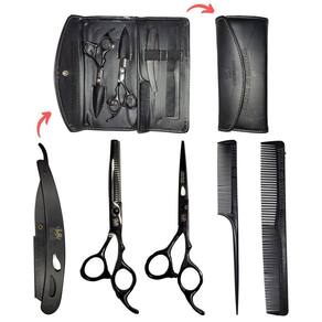 5 - tesoura de cabeleireiro ou barbeiro profissional, indicada para cabeleireiros de beleza, cabeleireiros, amantes e indivíduos de cabelo. Pode ser utilizado para aparar cabelos faciais: barba e pelos do corpo, também indicado para a vida doméstica como o noivo de estimação. Perfeito para quem deseja trabalhar com produto 100% novo e de alta qualidade ferramenta ideal para cabeleireiros e barbeiros. Tesoura com acabamento mais leve e resistente. Sua composição preserva o funcionamento e afiação da tesoura por mais tempo.