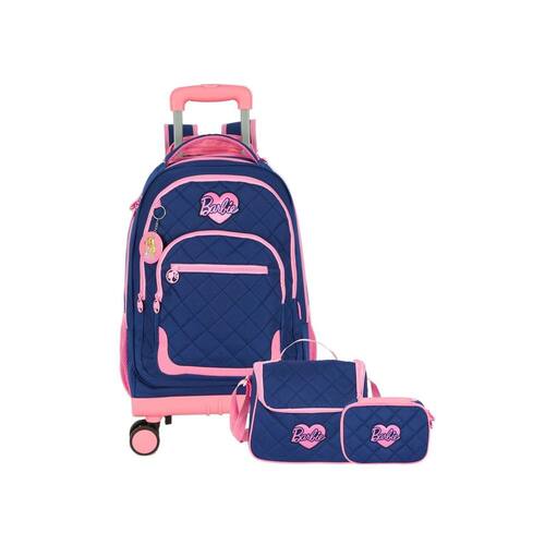 Kit Barbie Completo: O Sonho de Toda Menina Prepare a sua pequena para arrasar na escola com o kit Barbie mais completo do mercado Com uma mochila de rodas super estilosa, com chaveiro espelho embutido, lancheira térmica para manter a comida fresquinha e um estojo box espaçoso para guardar todos os materiais escolares, esse kit é a escolha perfeita para as fãs da Barbie. O que o kit inclui: Mochila de rodas: Com design moderno e estampa da Barbie, possui alças ajustáveis para maior conforto e um compartimento principal espaçoso para guardar livros, cadernos e outros materiais. O destaque fica por conta do chaveiro espelho embutido, para a menina se sentir ainda mais especial. Lancheira térmica: Ideal para manter a comida fresquinha durante o recreio. Com isolamento térmico, ela conserva a temperatura dos alimentos por mais tempo. Estojo box: Prático e organizado, perfeito para guardar lápis, canetas, borracha e outros itens escolares. Características: Material de alta qualidade: Confeccionado em materiais duráveis e resistentes. Estampa oficial da Barbie: Com os personagens mais queridos da boneca. Cores vibrantes: Para deixar a hora de ir para a escola ainda mais divertida. Fácil de limpar: Ideal para o dia a dia das crianças. CUIDADOS: -guarde em um local seco e arejado evitando locais úmidos. - Evite colocar excesso de peso no produto para não forçar os zíperes e costuras. - Proteja os objetos cortantes e/ou pontiagudos evitando o contato direto com o produto. - Evitar altas temperaturas. - Cores claras poderão manchar quando em contato com outros objetos ou roupas de cores pigmentadas. DICAS DE LIMPEZA: - Para a limpeza utilize apenas pano úmido com sabão neutro. - Não deixar de molho e secar a sombra Marca: Não Informado