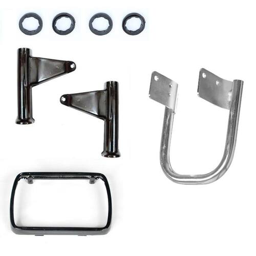 Suporte para Farol Lado Direito Uma Peça Suporte para Farol Lado Esquerdo Uma Peça Borrachas Farol Superior Duas Peças Borrachas Farol Inferior Duas Peças Aro Farol Uma Peça Barra Estabilizadora Cromada Uma Peça Especificações:• Cor: Preto;• Lado Esquerdo e Lado Esquerdo;• Foto Ilustrativa;• Marca: Mofardini.Aplicação:• CG 125 Today 1990 até 1994;• CG 125 Titan 1995 até 1999. Marca: Brv/Mofardini