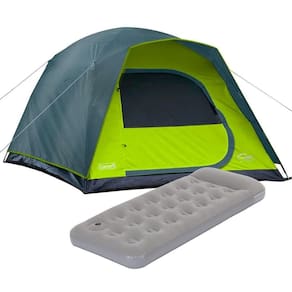 Kit Barraca Amazonia 4 Pessoas + Colchão Solteiro Coleman Com o Kit Barraca Amazonia com Colchão de Solteiro Inflável Coleman, você aproveita o sol e a natureza em uma barraca leve e compacta que é de fácil transporte e ideal para suas aventuras. O sistema WeatherTec, com piso de solda patenteados e costuras invertidas ajuda a manter a barraca sempre seca. A tecnologia UVGuard garante uma proteção contra os raios nocivos do sol. Possui bolsos internos e paredes quase verticais que oferecem 20% mais espaço interno para que você possa curtir seus momentos com muito mais conforto. PRINCIPAIS CARACTERÍSTICAS:Tecido Retardante de FogoTecnologia UVGuard: Oferece proteção 50+ FPS contra raios nocivos do sol;Sistema Illumine: Reflete as cordas a noite evitando acidentes;Armazenamento: Possui bolsos internos para organizar tudo no seu devido lugar;Montagem em apenas 10 minutos: Estrutura de varetas pré-fixadas com sistema de cores que facilitam a montagem;Fácil de Guardar: Possui bolsa de transporte com sacos separados para varetas e outros materiais.Espaço Extra: Extenção frontal da barraca que oferece maior proteção contra sol e chuvas e pode ser utilizada como espaço para armazenamento extra;Sistema Weathertec: Costuras invertidas e seladas para manter a barraca seca e estrutura forte, testada para suportar ventos fortes;Coluna de água: 1.500 mm CAPACIDADE:01 Colchão de Casal ou04 Pessoas em sacos de dormir DIMENSÕES:Altura: 1,42 mLargura: 1,98 mComprimento: 2,44 mPeso: 4,250 kg CONTEÚDO DA EMBALAGEM:01 Barraca Amazonia 4 Pessoas Coleman01 Colchão Inflável de Solterio Coleman01 Manual de instruções Material - Poliéster Garantia - 12 Meses Capacidade - 4 Pessoas Cor Predominante - Cinza Modelo - Coleman Inflador Incorporado - Sim Auto inflável - Não Coluna Dágua - 1.500mm Montagem - 10 a 15 minutos Proteção Solar - Sim