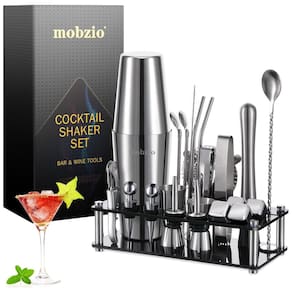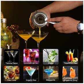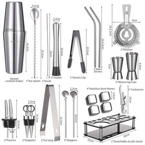The Perfect Cocktail Shaker Set Quem quer que você dê isso ficará muito feliz. Feito para ajudá lo a fazer coquetéis como um profissional, este kit de bartender é a escolha ideal para entreter convidados em casa ou festas e é resistente o suficiente para lidar com alto volume em bares Este conjunto de coquetéis premium inclui tudo o que você precisa para fazer bebidas incríveis, incluindo um shaker, coador e macerador para ajudá lo a começar. Multifuction Se você é um iniciante ou até mesmo um bartender, nosso conjunto de coqueteleira será o seu assistente de mistura de bar perfeito. , Tequila, Gin, Rum, Brandy, Saquê, Chá com Leite, Café Gelado e muito mais. Alta qualidade o conjunto de coqueteleira é feito de material de aço inoxidável premium. O conjunto de ferramentas de barra é muito fácil de limpar à mão com água morna e sabão e mantém o brilho com facilidade, adicionando arte moderna ao seu bar doméstico. Fácil de limpar e zenar o suporte de acrílico ecológico tem dentes designados para manter seu conjunto de ferramentas de barra organizado, não mais caótico. Além disso, todos os acessórios podem ser lavados na máquina de lavar louça para tornar a vida mais conveniente e fácil. lindo kit bartender com suporte, com certeza você vai ganhar a atenção dos seus convidados. Presente para amantes de coquetéis este kit de bartender em caixa de presente tem um belo design de aparência, ótimo para iniciantes, entusiastas de coquetéis e bartenders