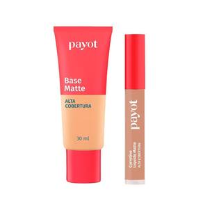 1- Base Matte Alta Cobertura Cor: 3.0 A Base Matte Payot possui na fórmula alta cobertura com acabamento matte perfeito. Textura cremosa, longa duração, resistência a água e não transfere. Desliza facilmente na pele e uniformiza o tom. Proporciona uma cobertura natural. Fórmula oil-free, não comedogênica. Para todos os tipos de pele. 9 tonalidades.