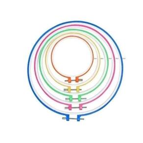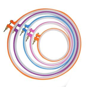 O Kit Bastidor Plástico para Bordado contém 5 tamanhos diferentes (13, 16, 20, 24 e 27 cm), proporcionando versatilidade para diversos tipos de bordados. Com sistema de encaixe seguro e tarraxa para ajuste preciso, oferece estabilidade e praticidade para iniciantes e profissionais.