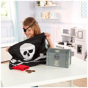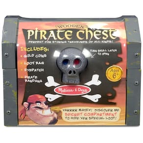 O Baú Pirata de Madeira Melissa Doug é um conjunto de brinquedos de alta qualidade que inclui um baú de tesouro de madeira resistente, adornado com uma caveira com joias e pintado à mão. O baú tem espaço suficiente para guardar tesouros, além de um compartimento secreto para esconder itens valiosos. O conjunto também inclui uma bandana de pirata com caveira e ossos cruzados, um tapa olho, um saco de saque aveludado e moedas de dobrão douradas. Este conjunto de brincadeiras de faz de conta incentiva brincadeiras criativas e imaginativas, e é um presente ideal para crianças de 6 a 8 anos. Adicione o conjunto de fantasias de pirata Melissa Doug Pirate para completar a experiência de jogo prática e sem tela. Desde a fundação da empresa, há mais de 25 anos, Melissa Doug tem fornecido consistentemente produtos inovadores que inspiram o pensamento aberto, incentivam as crianças a ver novas possibilidades e oferecem inúmeras maneiras de brincar. É parte de uma visão maior para retomar a infância, dando às crianças uma verdadeira infância com espaço e liberdade para explorar o seu mundo, para que possam descobrir a si mesmas, suas paixões e seu propósito.