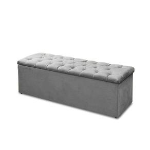 Lindo Conjunto Baú Recamier E Cabeceira E Box King Siza em Suede Cinza. Ideal para quem busca modernidade para o quarto e espaço para guardar cobertores, roupas de cama, travesseiros, entre outros. Recomendado para cama king padrão 1.93m x 2.03m.